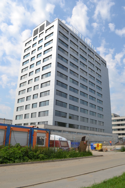 Návrh nosných konstrukcí administrativní budovy o dvou podzemních podlažích a čtrnácti podlažích nadzemních. Jedná se o železobetonové monolitické stropy se svislými železobetonovými sloupy a železobetonovými stěnami. Objekt je založen na velkoprůměrových vrtaných pilotách. Podzemní podlaží řešeno v systému bílá vana.